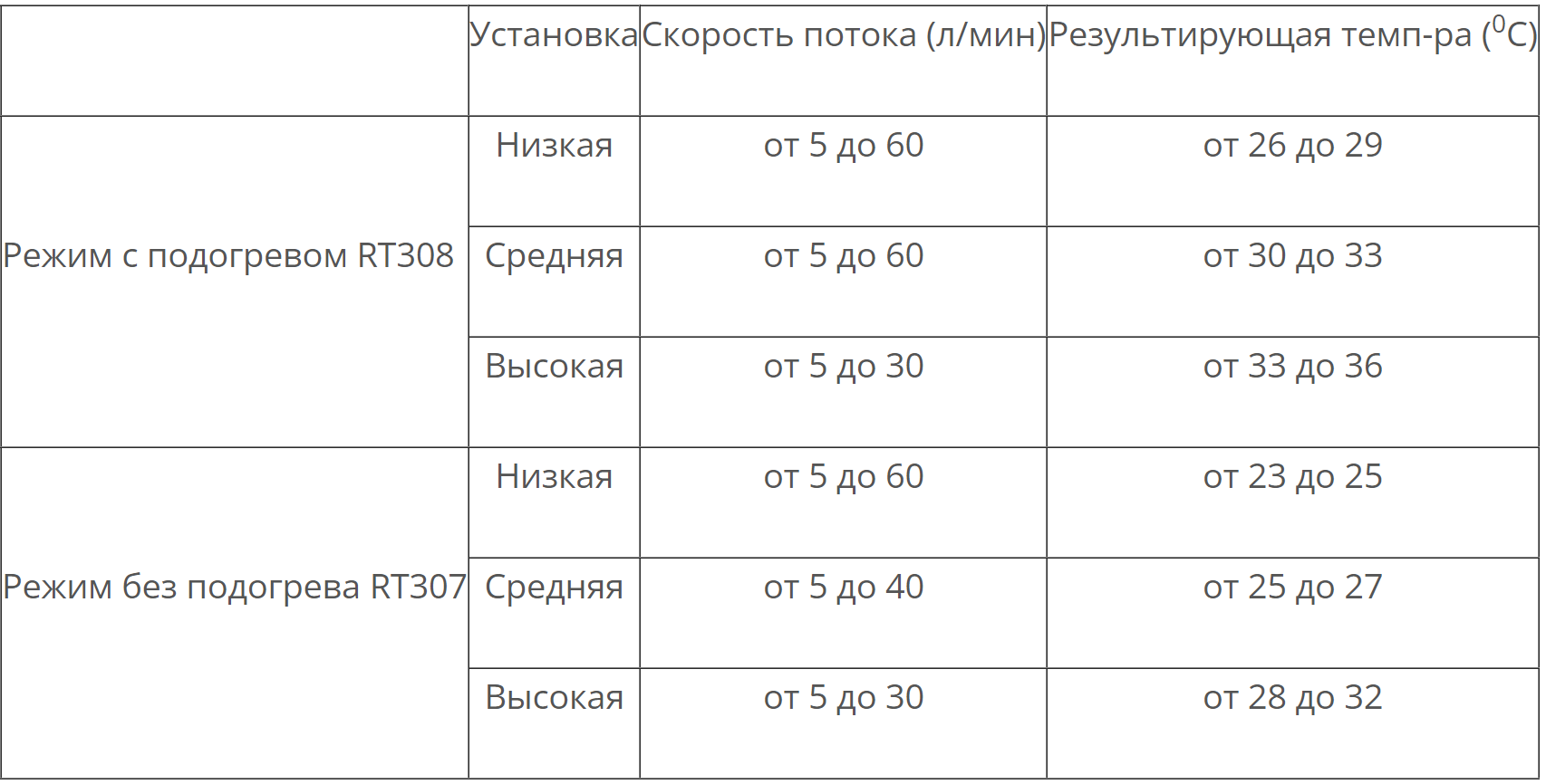• Два режима работы. Режим с подогревом RT-308 и режим без подогрева RT-307